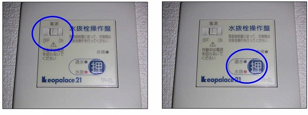 〈Passo a passo para abrir o registro usando o painel elétrico de drenagem〉